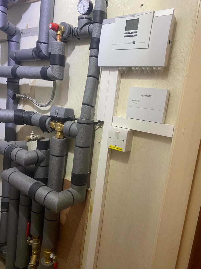 Installation of a Vaillant Air Source Heat Pump (ASHP) – Vaillant’s AroTHERM ASHP was chosen for its energy efficiency, low noise output, and strong performance, even in colder climates.