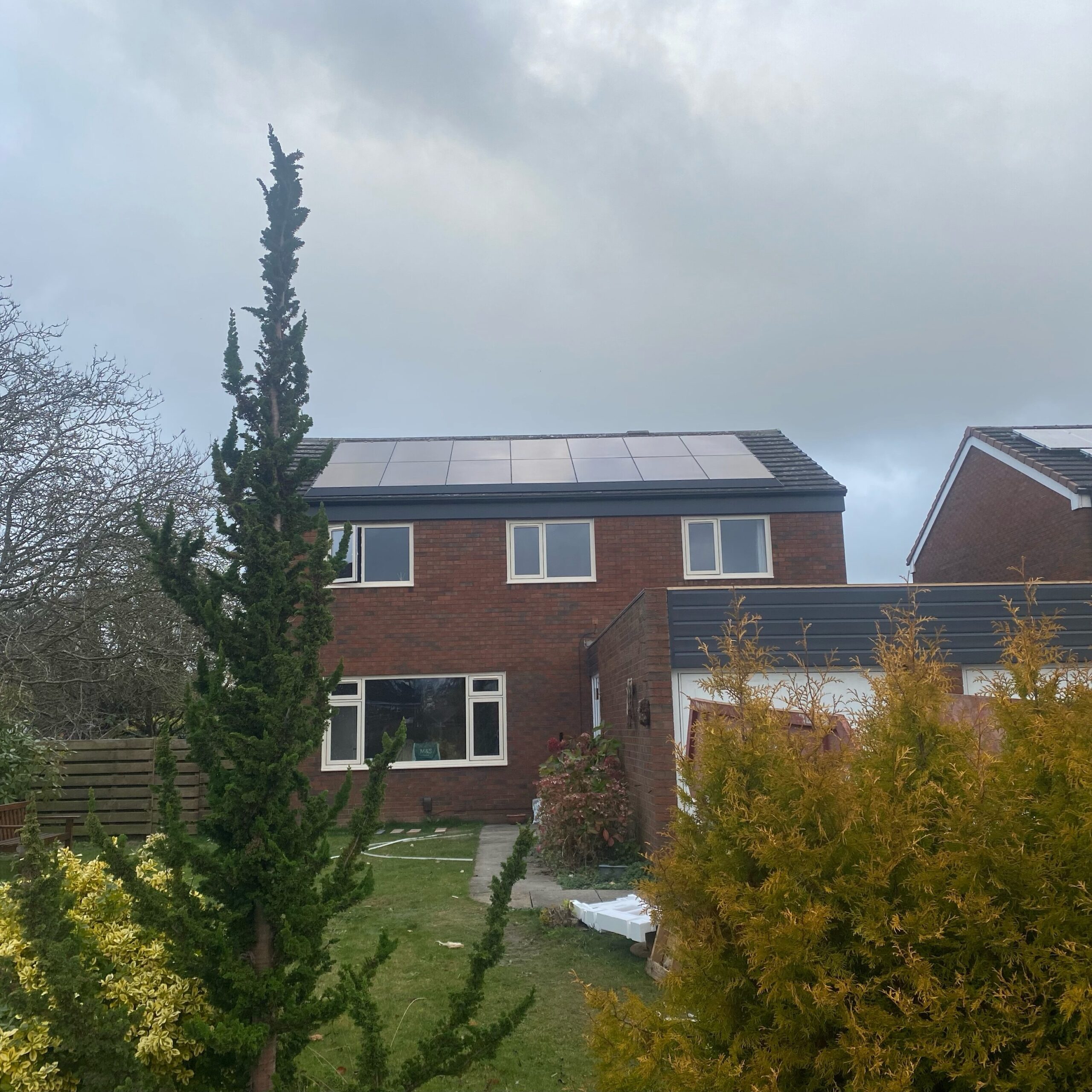 Solar PV Array Installation – A solar PV system was included to harness solar energy, providing a renewable source of electricity to power the heat pump and other household needs.