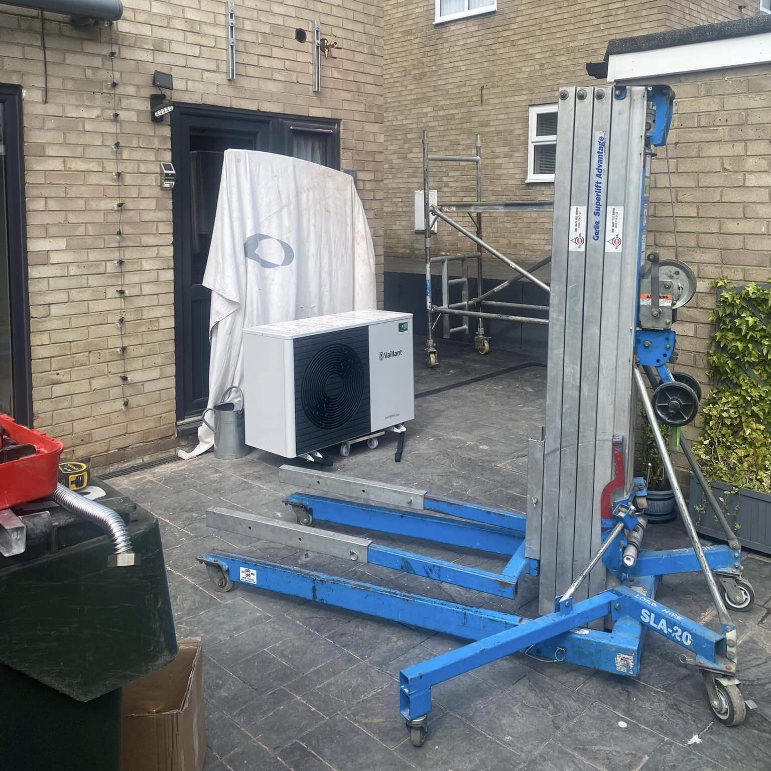 and room layouts. Concurrently, the air source heat pump and unvented hot water cylinder were installed, with careful attention to positioning, ventilation, and plumbing connections. Experienced technicians executed the installation with precision, ensuring compliance with safety standards and regulatory requirements while minimizing disruption to the client’s daily routine.
