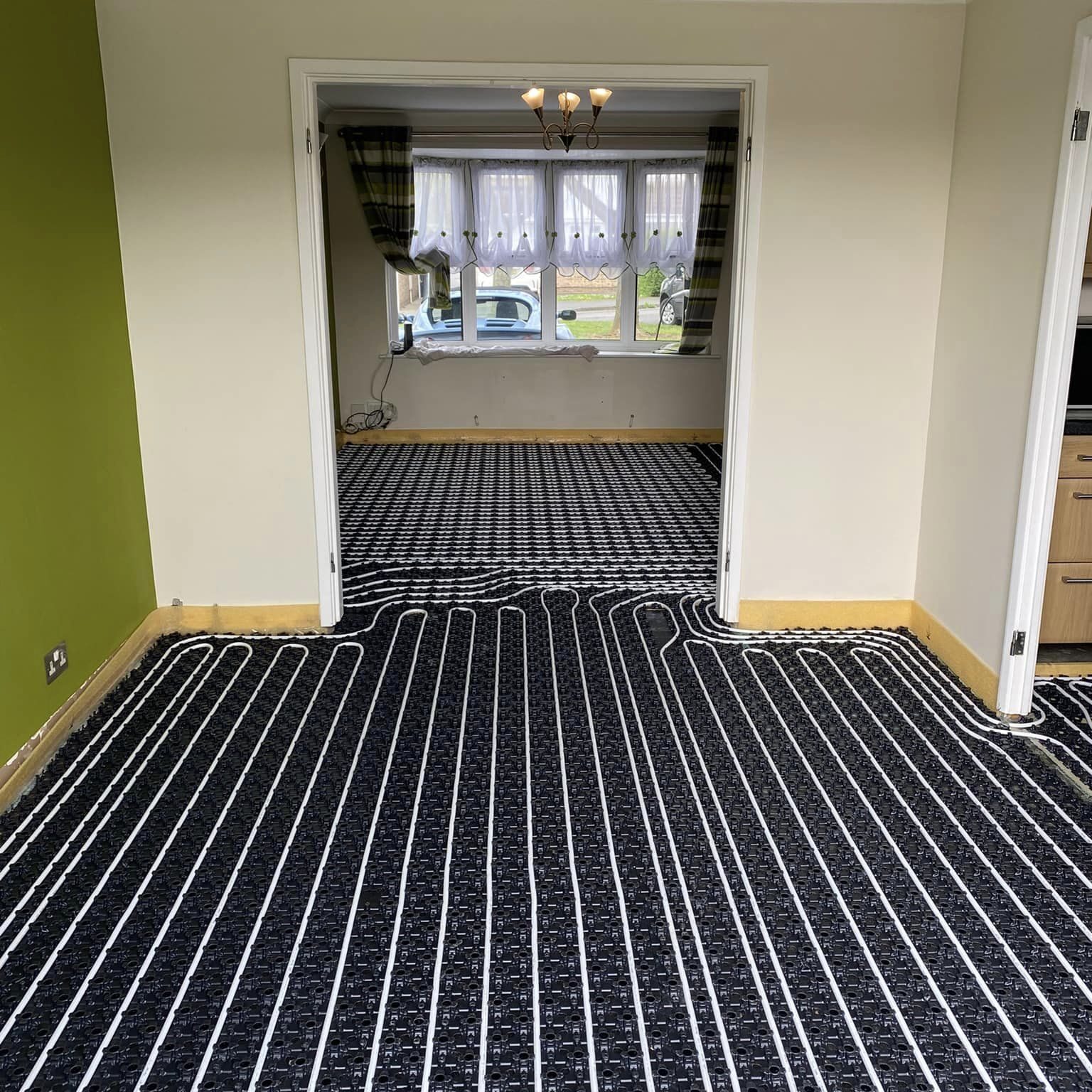 The installation project commenced with the retrofitting of underfloor heating pipes within the property’s floor structure, meticulously coordinated to accommodate existing fixtures